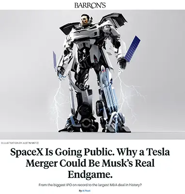 TL;DR: SpaceX’s pending IPO — likely the largest in history — is framed by Barron’s as the first move in a broader “convergence” strategy that could ultimately combine SpaceX, Tesla, and Musk’s AI ventures into a single industrial-AI conglomerate, with high-upside and high-uncertainty implications for investors and the broader AI infrastructure market.
