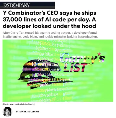 TL;DR: When a senior engineer audited the publicly visible output of Y Combinator’s CEO’s vaunted AI-generated code output, he found bloat, waste, and basic production errors — a useful corrective to the volume-as-velocity narrative spreading through tech leadership circles.