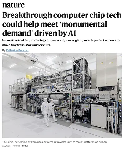 The chip industry is under acute pressure to scale production faster than current technology allows. A new lithography system from Dutch manufacturer ASML uses extreme ultraviolet light with enhanced optics to etch structures as small as 8 nanometers onto silicon wafers — reportedly the smallest ever achieved in a single commercial step. The practical result: chips produced with this system could carry 2.9 times more transistors than those made with the prior generation of equipment.