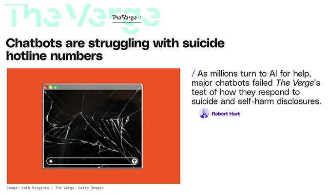 https://www.theverge.com/report/841610/ai-chatbot-suicide-safety-failure: April 9, 2026