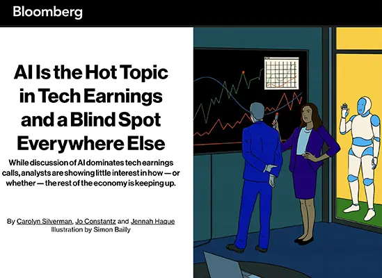 8. Bloomberg — “AI Is the Hot Topic in Tech Earnings and a Blind Spot Everywhere Else” (December 19, 2025)Examines where AI spending is — and isn’t — being measured; platform investment patterns across tech. https://www.bloomberg.com/graphics/2025-wall-street-ai-questions-beyond-tech/