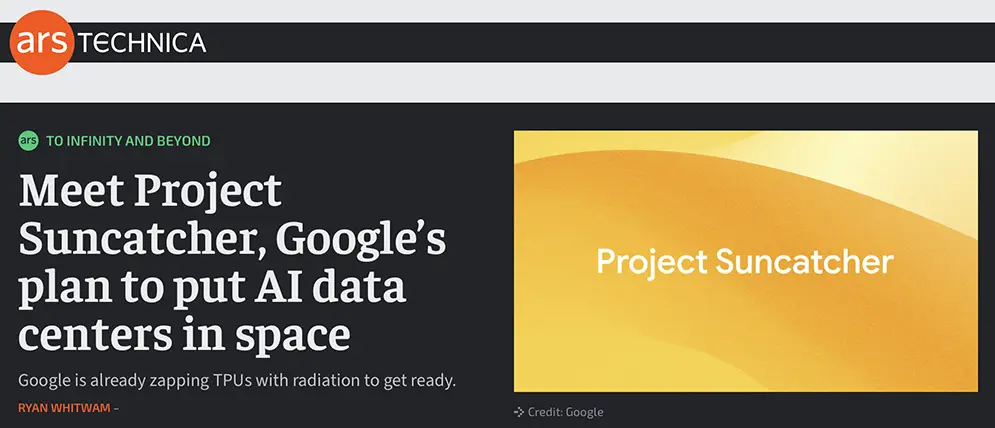 The concept of orbital data centers — AI computing hardware mounted on satellites, powered by solar arrays, and cooled by radiating heat into space — has moved from theoretical to actively funded. SpaceX has announced plans for a constellation of up to one million satellites for this purpose. A startup called Starcloud has already launched an Nvidia GPU into orbit. Google’s Project Suncatcher (see Source 2) is pursuing a parallel path.