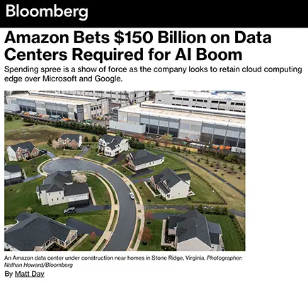 AMAZON BETS $150 BILLION ON DATA CENTERS REQUIRED FOR AI BOOM