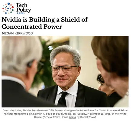TechPolicy.Press — Nvidia Is Building a Shield of Concentrated Power (December 2025) https://www.techpolicy.press/nvidia-is-building-a-shield-of-concentrated-power/