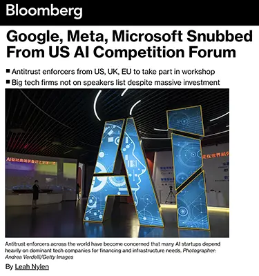 Bloomberg — OpenAI, Microsoft, Meta, Google absent in AI competition event (May 2024) https://www.bloomberg.com/news/articles/2024-05-30/openai-microsoft-meta-google-all-left-off-us-backed-event-on-competition