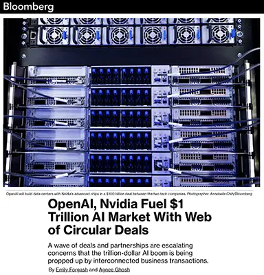 Bloomberg — OpenAI, Nvidia Fuel $1 Trillion AI Market With Web of Circular Deals (October 2025) https://www.bloomberg.com/news/features/2025-10-07/openai-s-nvidia-amd-deals-boost-1-trillion-ai-boom-with-circular-deals