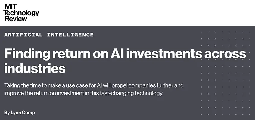 MIT Technology Review — Finding return on AI investments across industries (October 2025) https://www.technologyreview.com/2025/10/28/1126693/finding-return-on-ai-investments-across-industries/