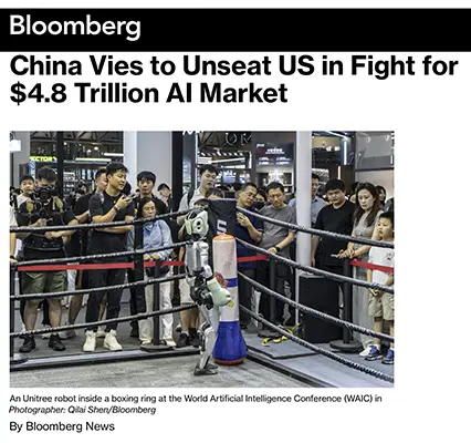 - Bloomberg — China Vies to Unseat US in Fight for $4.8 Trillion AI Market — July 30, 2025 https://www.bloomberg.com/news/articles/2025-07-30/china-prepares-to-unseat-us-in-fight-for-4-8-trillion-ai-market