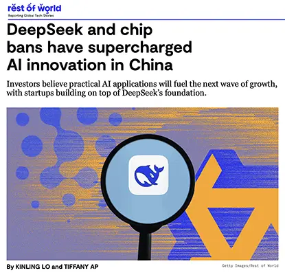 - Rest of World — China’s AI boom is driven by DeepSeek and chip restrictions — 2025 https://restofworld.org/2025/china-ai-boom-chip-ban-deepseek/