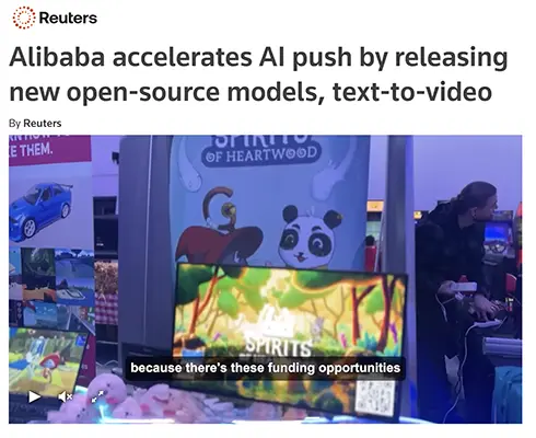 - Reuters — Alibaba accelerates AI push by releasing new open-source models — September 19, 2024 https://www.reuters.com/technology/alibaba-accelerates-ai-push-by-releasing-new-open-source-models-text-to-video-2024-09-19/