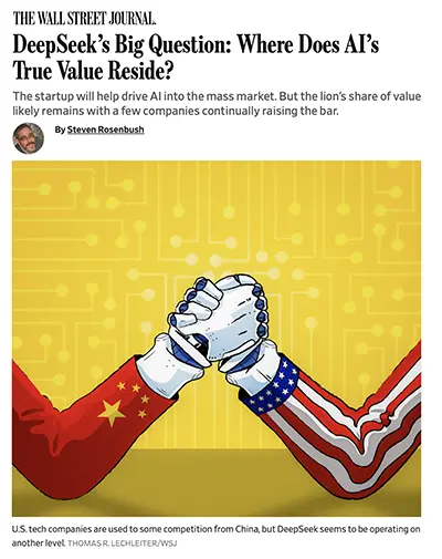 - Wall Street Journal — DeepSeek’s Big Question: Where Does AI’s True Value Reside? — January 2025 https://www.wsj.com/articles/DeepSeeks-big-question-where-does-ais-true-value-reside-35a36cd5