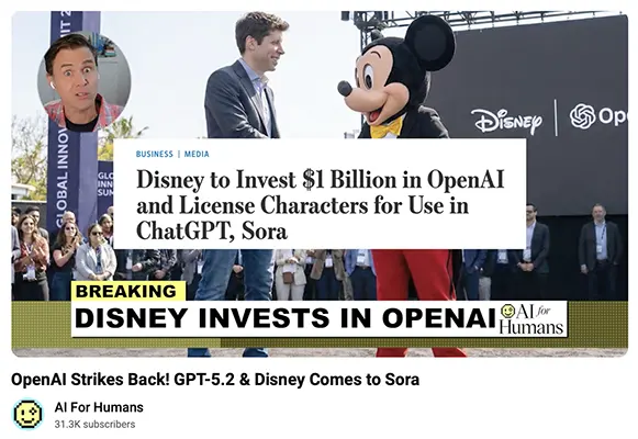 “OpenAI GPT-5.2 Is Here + Disney Brings Mickey to Sora” — AI For Humans (YouTube, Dec 12, 2025)