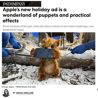 “APPLE’S NEW HOLIDAY AD IS A WONDERLAND OF PUPPETS AND PRACTICAL EFFECTS” — FAST COMPANY (DEC 8, 2025)