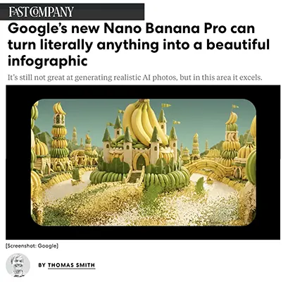 “GOOGLE’S NEW NANO BANANA PRO CAN TURN LITERALLY ANYTHING INTO A BEAUTIFUL INFOGRAPHIC” — FAST COMPANY (DEC 2, 2025)