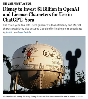 🎬 Disney Licenses Iconic Characters to OpenAI in Landmark $1B AI Deal