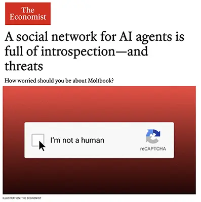 “A social network for AI agents is full of introspection—and threats” — The Economist, Feb. 2, 2026