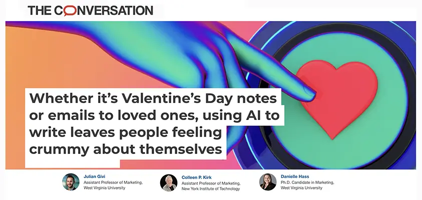 “Whether It’s Valentine’s Day Notes or Emails to Loved Ones, Using AI to Write Leaves People Feeling Crummy About Themselves” – The Conversation, February 2, 2026