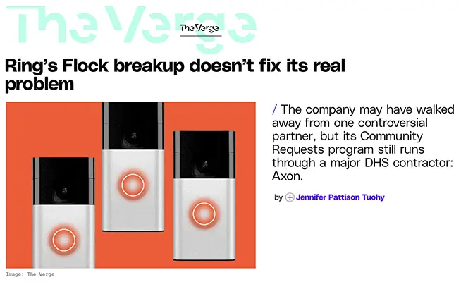 Ring–Flock Partnership Collapse & Surveillance Backlash