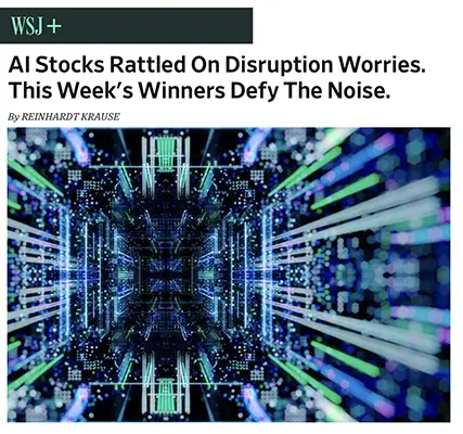 “AI Stocks Rattled on Disruption Worries. This Week’s Winners Defy the Noise.” – Investor’s Business Daily / WSJ, February 13, 2026