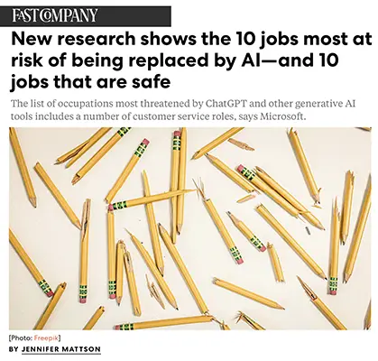 https://www.fastcompany.com/91380607/10-jobs-most-least-at-risk-of-being-replaced-by-ai-artificial-intelligence-research-microsoft: January 06, 2026