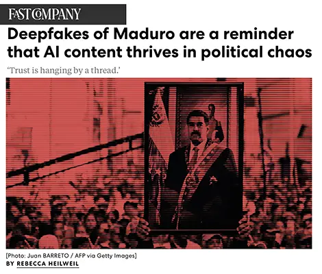 DEEPFAKES OF MADURO ARE A REMINDER THAT AI CONTENT THRIVES IN POLITICAL CHAOS (FAST COMPANY, JAN 6, 2026)