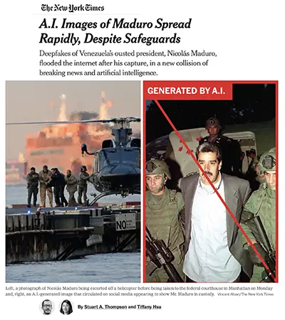 A.I. IMAGES OF MADURO SPREAD RAPIDLY, DESPITE SAFEGUARDS: THE NEW YORK TIMES, JAN 5, 2026
