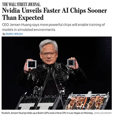 https://www.wsj.com/wsjplus/dashboard/articles/dow-jones-futures-amd-apple-palantir-tesla-are-key-movers-nvidia-ceo-jensen-huang-announces-new-ai-chip-134121458601439914: January 09, 2026