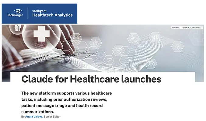 https://www.techtarget.com/healthtechanalytics/news/366637160/Claude-for-Healthcare-launches: January 27, 2026