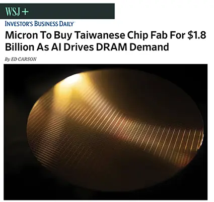 Micron to Buy Taiwanese Chip Fab for $1.8 Billion as AI Drives DRAM Demand