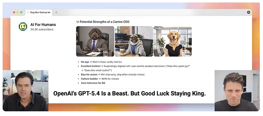 This AI for Humans episode frames OpenAI’s GPT-5.4 launch as both a product milestone and a reminder that state-of-the-art leadership in AI may now last only days or weeks, not quarters. According to the discussion, GPT-5.4 delivers stronger coding performance, lower hallucination rates, improved tool efficiency, and better “computer use” capabilities, including the ability to interact with interfaces in ways that increasingly resemble average human digital work. The hosts emphasize that the most important signal is not just benchmark improvement, but the continued movement of models into economically useful tasks—website building, workflow execution, document handling, and tool orchestration. For business leaders, this reinforces that AI is no longer just a chatbot layer; it is becoming an execution layer.