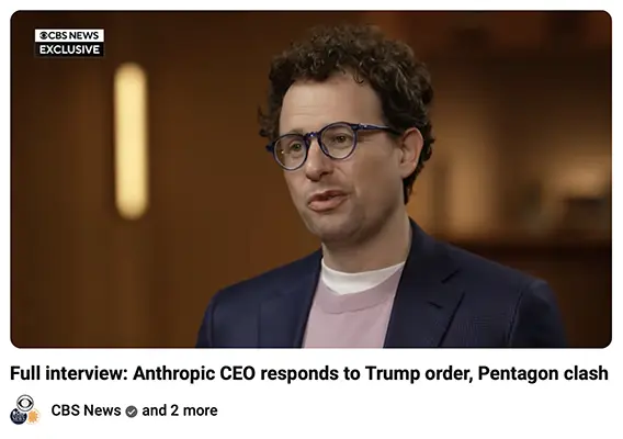 In this CBS News interview, Anthropic CEO Dario Amodei presents the company’s dispute with the Pentagon as a conflict not over whether AI should support national security, but over where limits should remain in place as military use expands. Amodei repeatedly stresses that Anthropic has already worked extensively with the U.S. government and military, including use on classified systems and national-security applications. But he says the company has held firm on two narrow red lines: no use of its models for domestic mass surveillance and no support for fully autonomous weapons that can act without human oversight. His argument is that AI capability is advancing faster than law and oversight, making these boundaries necessary until Congress or another legitimate democratic process catches up.