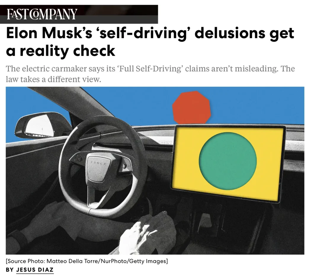https://www.fastcompany.com/91500914/elon-musks-self-driving-delusions-get-a-reality-check: March 10, 2026