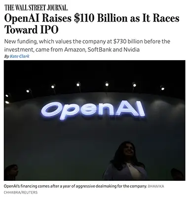 OPENAI RAISES $110 BILLION AS IT RACES TOWARD IPO
