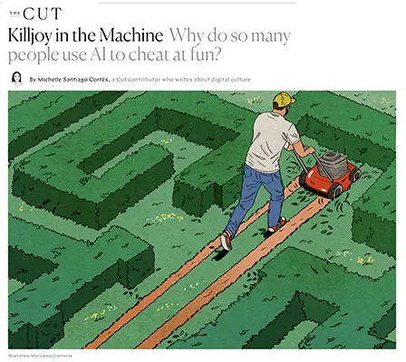 In her essay for The Cut, Michelle Santiago Cortés examines how ChatGPT and other generative AI tools are creeping into leisure activities, undermining the sense of challenge, creativity, and community that make hobbies meaningful. From escape rooms to trivia nights and online crochet forums, people increasingly use AI to “cheat at fun.” The author describes how players now pull out ChatGPT to solve puzzles or write witty social posts—only to find it ruins the very experience they paid for.