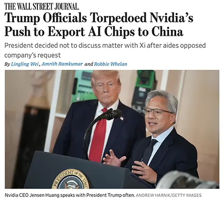 🇨🇳 TRUMP OFFICIALS BLOCK NVIDIA’S PUSH TO EXPORT AI CHIPS TO CHINA