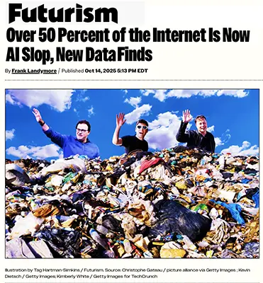 https://futurism.com/artificial-intelligence/over-50-percent-internet-ai-slop: October 21, 2025