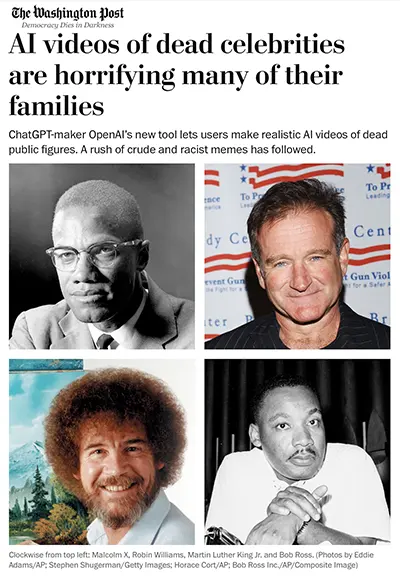 OpenAI’s Sora 2 has ignited outrage with its ability to generate realistic AI videos of deceased celebrities and historical figures without family consent. Clips of Malcolm X, Martin Luther King Jr., and Robin Williams have gone viral, depicting them in crude or disturbing scenarios. While OpenAI claims to permit depictions of “historical figures” under free speech, families and advocacy groups argue it’s a violation of dignity, likeness rights, and legacy. The article highlights a growing crisis over synthetic resurrection — the creation of digital clones of the dead for entertainment or parody — and the absence of strong legal protections for posthumous identity rights.