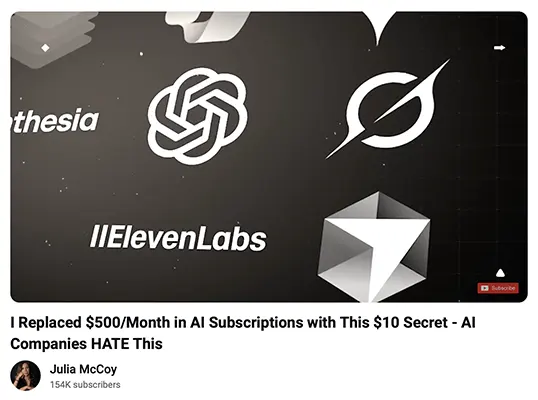 I Replaced $500/Month in AI Subscriptions with This $10 Secret – AI Companies HATE This, Julia McCoy (YouTube), Oct 4, 2025
